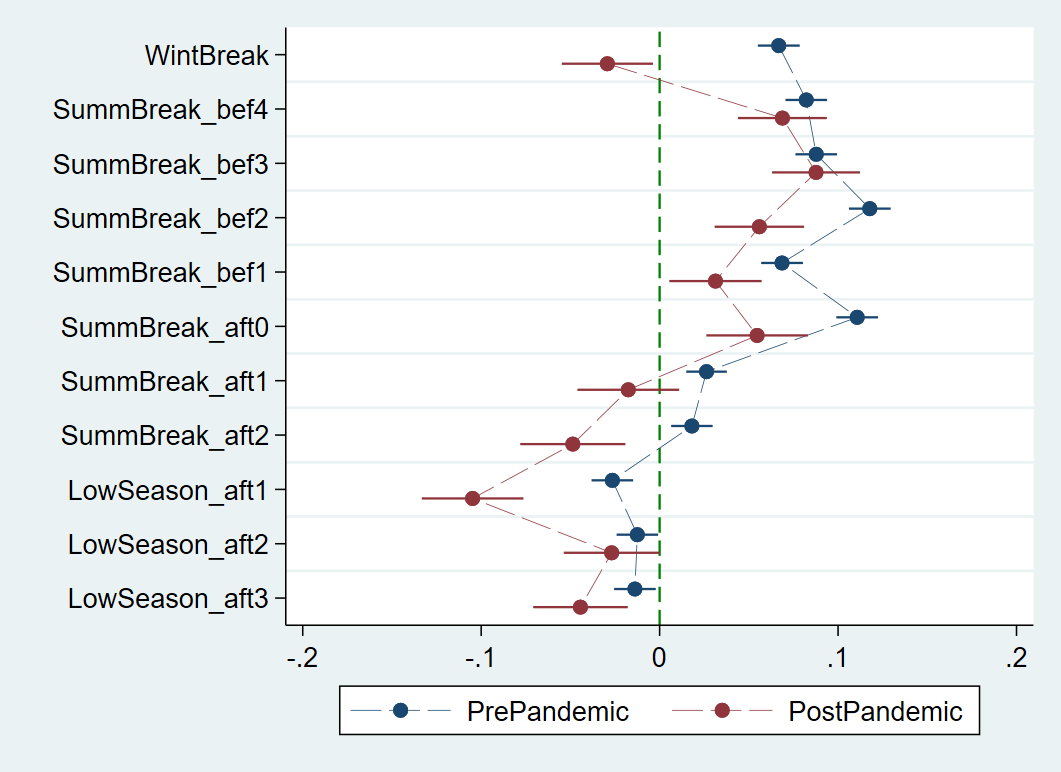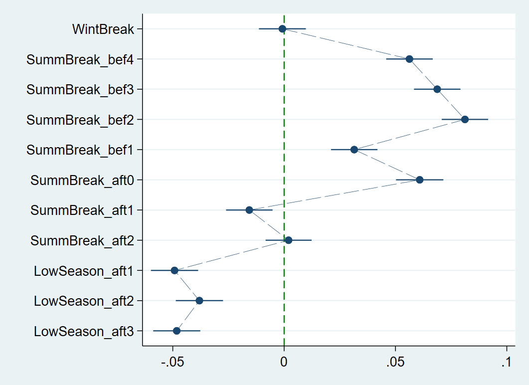 , keep(WintBreak SummBreak_* SummBreak_* LowSeason_*) ///